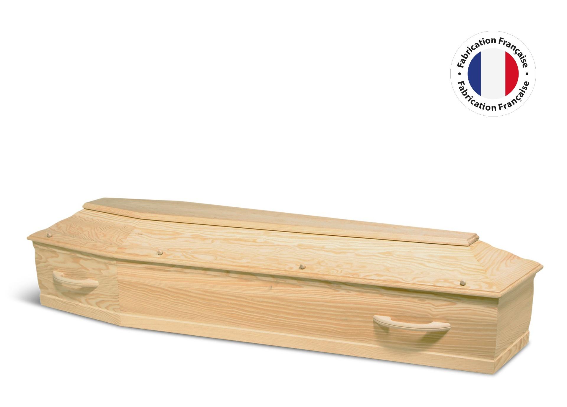 Le modèle Champagne met en valeur les qualités intrinsèques du bois, dans une approche épurée et élégante. Fabriqué en pin massif, ce cercueil se distingue par sa teinte brute, laissant apparaître l’aspect authentique et naturel du matériau. Le choix d’un couvercle avec équerres ajoute une structure géométrique à l’ensemble et renforce le caractère sobrement travaillé. Le plus de ce modèle de cercueil : la démarche responsable. Conçu en France, il répond à la conscience écologique de chacun grâce à sa finition vernis eau et son bois issu de forêts gérées durablement.